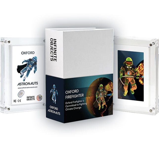 The Oxford Astronaut Collectible comes in an Infinite Object Digital Art Frame that you can plug and play and put on display, which will play on an Infinite Loop and serve as a daily inspiration for you to stay the course whether you’re solving global challenges in education, climate change, healthcare, finance, or in technology.